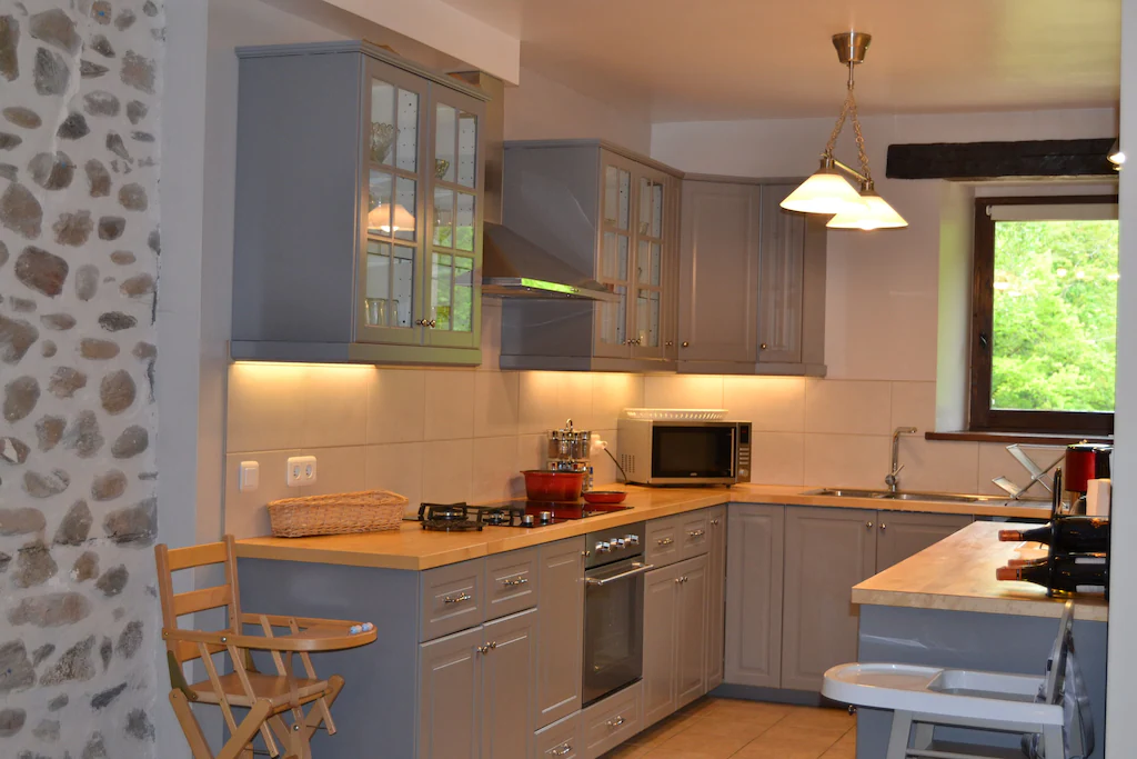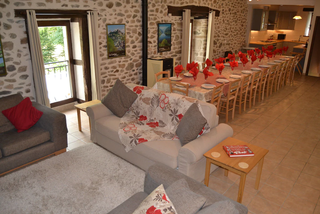 La Grange has an entrance off the outdoor patio, that leads to the foyer with a large fridge and freezer and access to first shower room with a toilet, washing machine, indoor clothes lines, and game supplies. Up the stairs to the main livingroom you will find a large open space entertaining area with pool table, darts, and a magnificent long dining table. The Master Bedroom is on this first floor, with its own shower room and office space. Up to the second floor you will find four more bedrooms, a family bath with shower and bathtub, and another en suite shower room. Additional beds are available on request: a double sofabed in the living room, a single bed on the 2nd floor landing, and two travel cots for use in any room.